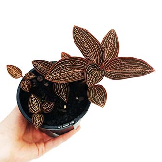 Anoectochilus lylei (Laos, dark velvet with Salmonpink line)