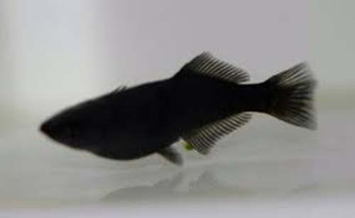 주위의 밝기와 환경은 관계없다는 듯이 몸부터 지느러미에 이르기까지 칠흑 같은 채색을 유지하고 있습니다. 머리부터 꼬리까지 완만한 커브를 그리고 멋진 스타일도 그 매력을 돋보이게 하고 있습니다. 꼬리지느러미의 가장자리를 장식한 황색도 세련 되었습니다.